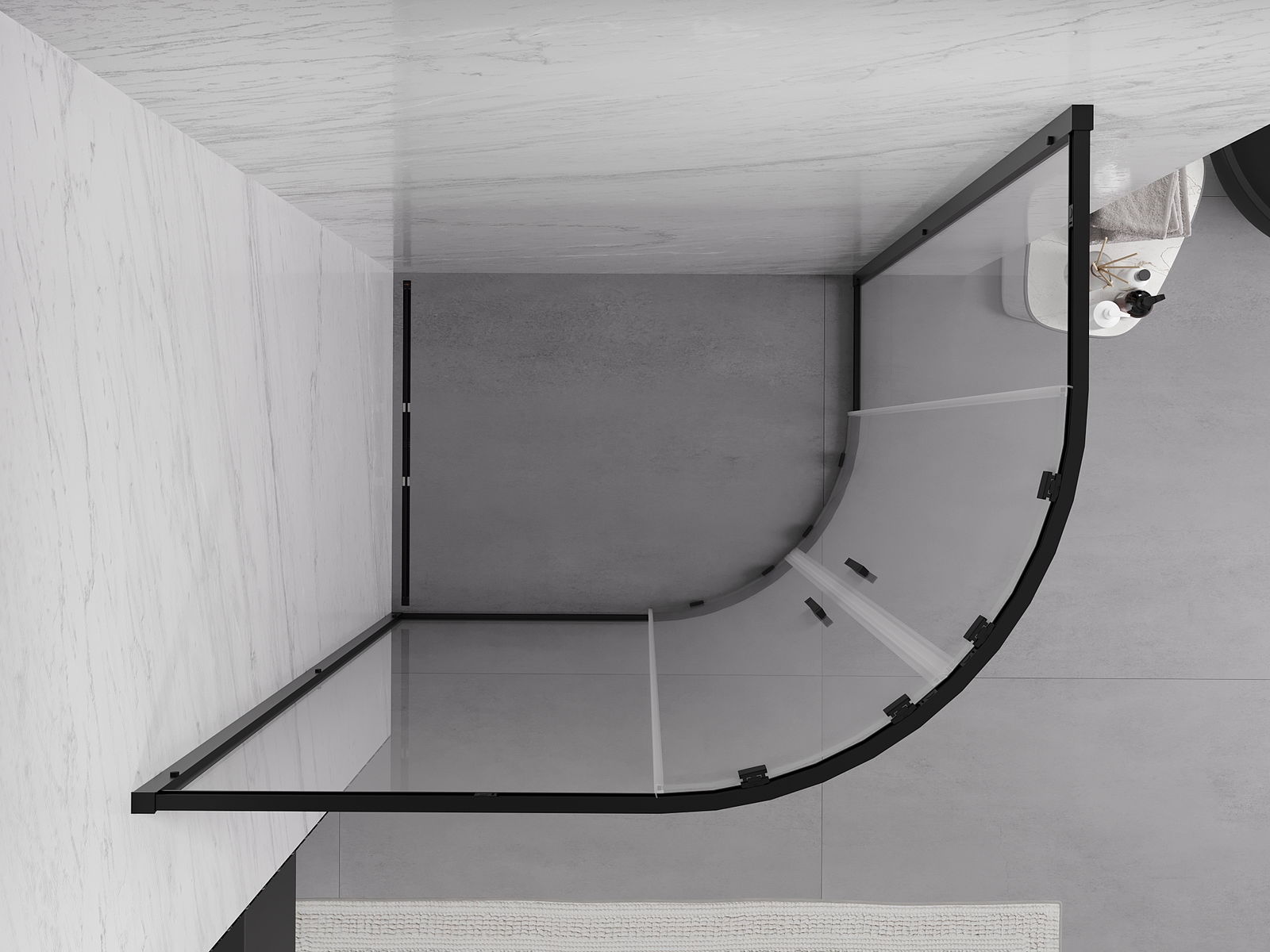 Mexen Exo aszmetrikus, tolóajtós, félköríves zuhanykabin 120 x 80 cm, átlátszó, fekete - 8132-120-080-70-00