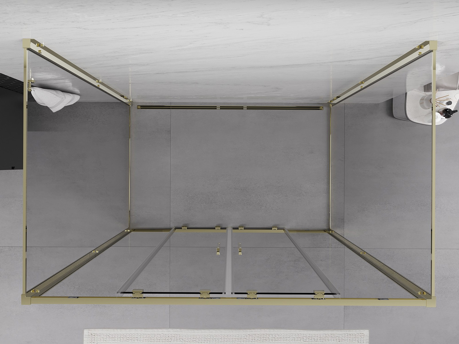 Mexen Exo-3S 3-falú zuhanykabin 130 x 100 cm, átlátszó, arany - 8152-130-100-50-00-3S