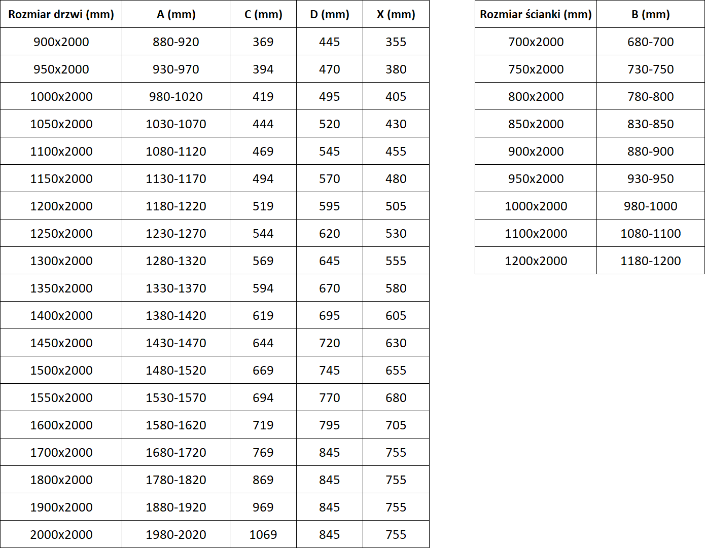 A zuhanykabinok, ajtók és válaszfalak alapesetben meghatározott méretű zuhanytálcákra történő szerelésre alkalmasak. Ezek a méretek szerepelnek a termék nevében vagy leírásában. Fontos azonban tudni, hogy az elemek tényleges méretei kismértékben eltérhetnek a névleges értékektől. Közvetlenül a padlóra történő szerelés esetén javasoljuk a külső méretek és az elemek elrendezésének pontos ellenőrzését a műszaki rajz alapján.