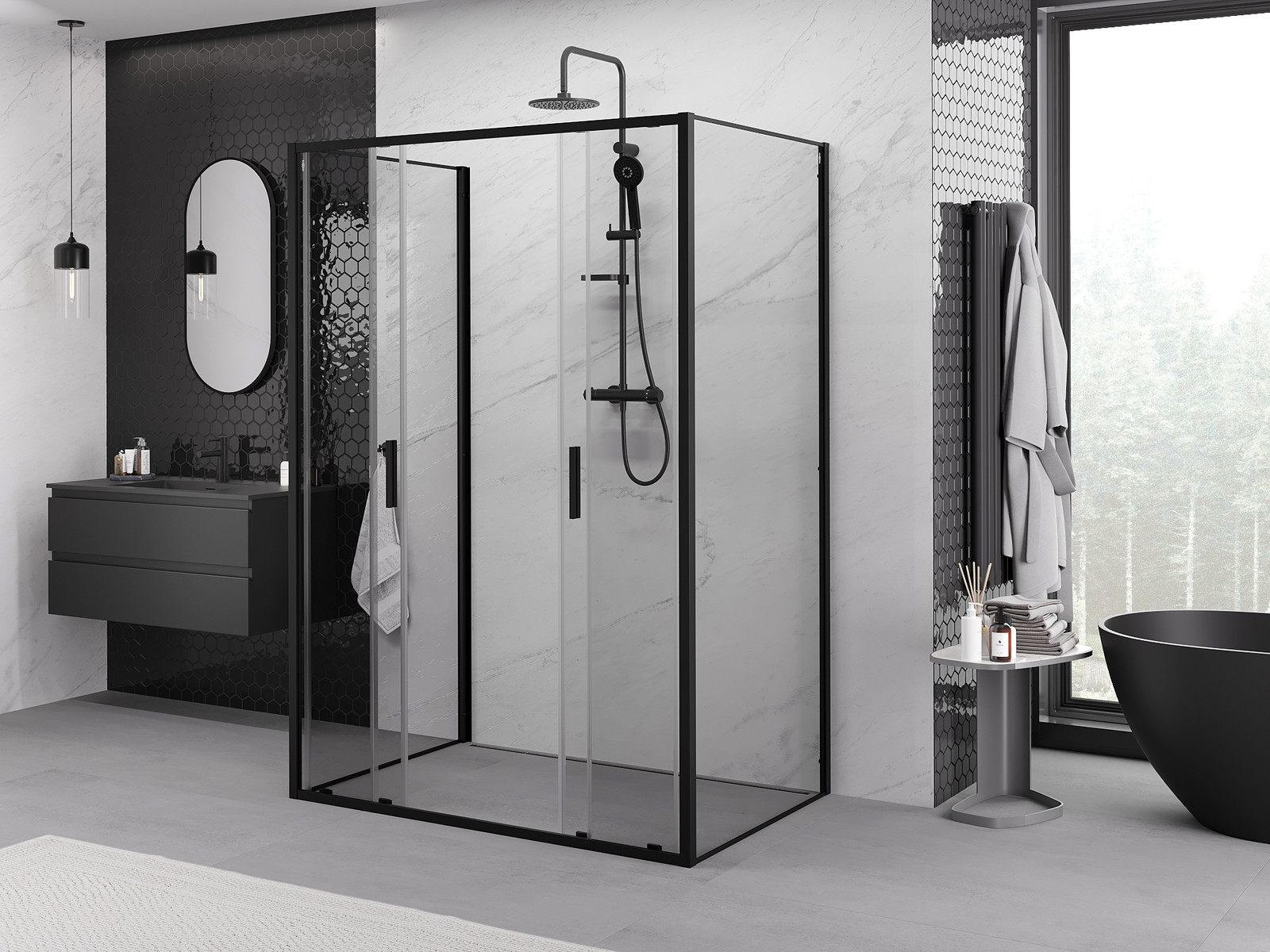 Mexen Exo-3S 3-oldalú tolóajtós zuhanykabin 160 x 80 cm, átlátszó, fekete - 8152-160-080-70-00-3S