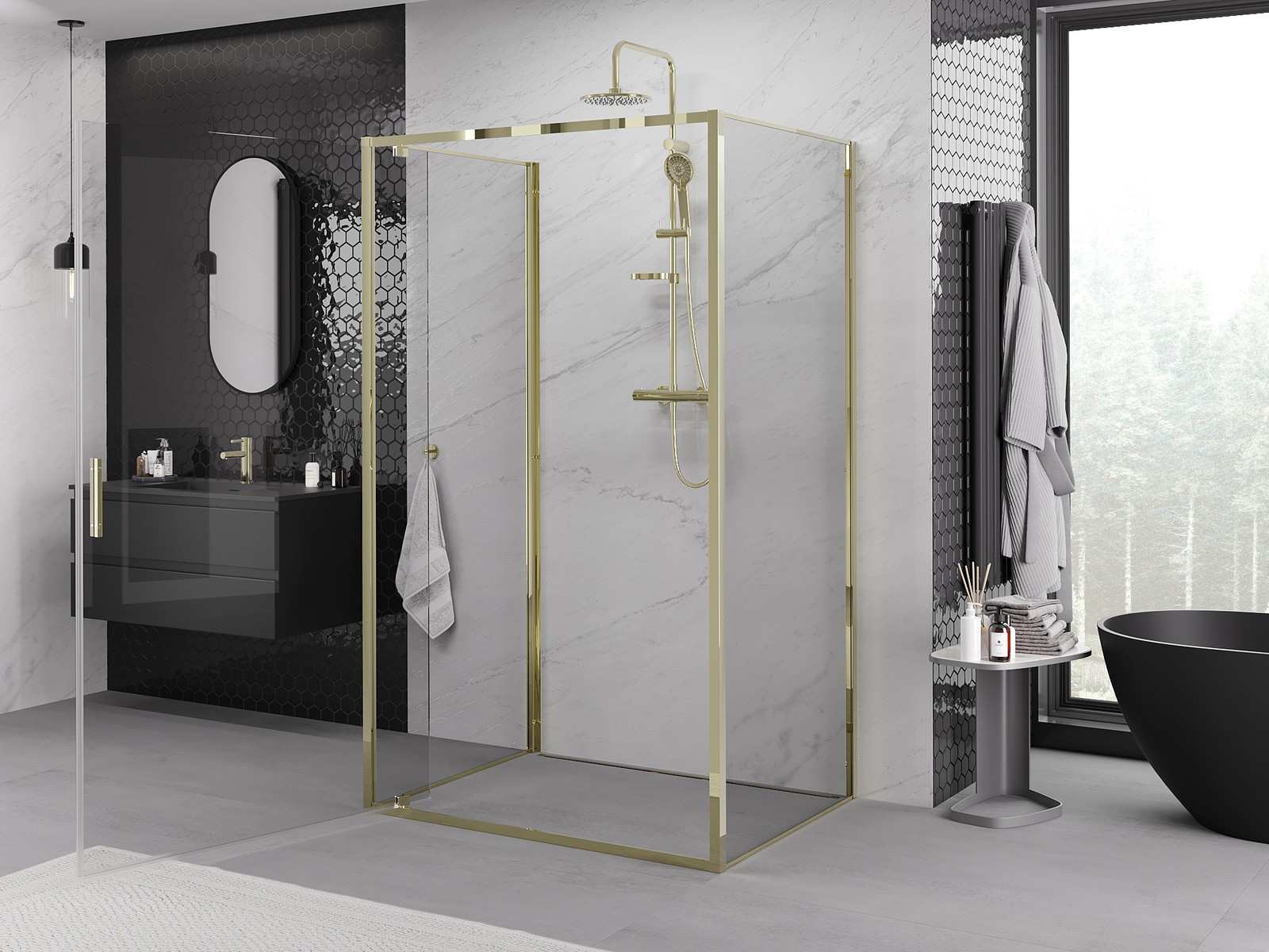 Mexen Exo-3S 3 falú zuhanykabin, nyíló, 100 x 90 cm, átlátszó, arany - 8181-100-090-50-00-3S