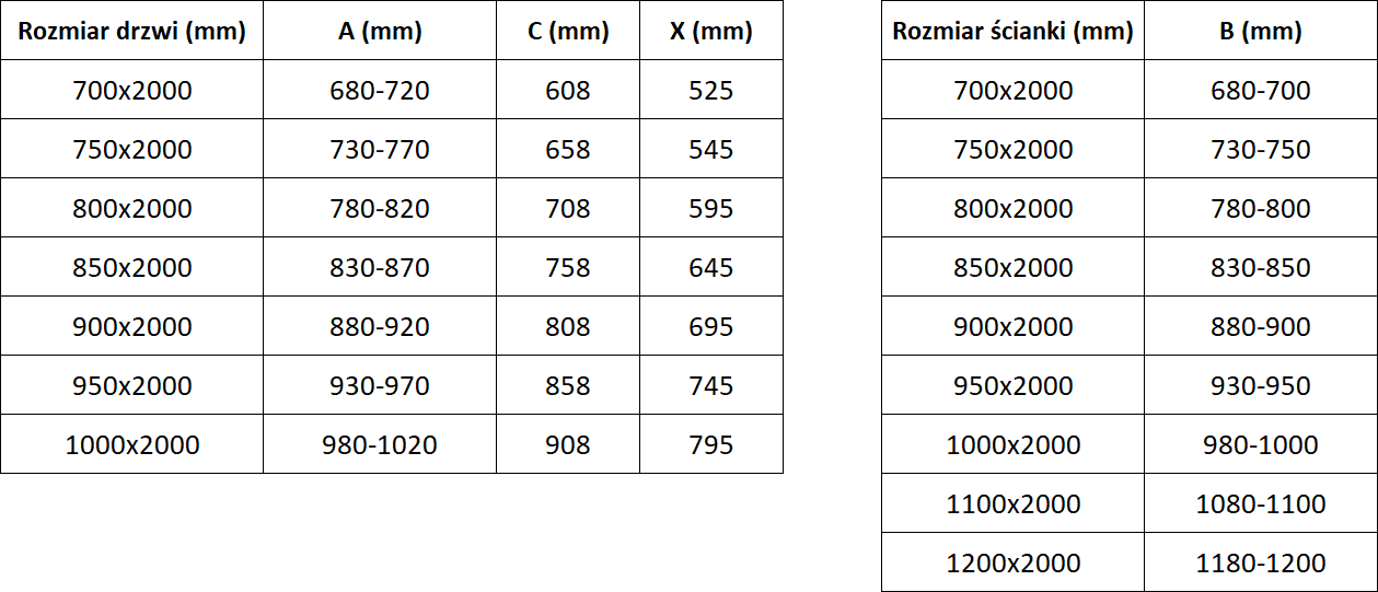A zuhanykabinok, ajtók és válaszfalak alapesetben meghatározott méretű zuhanytálcákra történő szerelésre alkalmasak. Ezek a méretek szerepelnek a termék nevében vagy leírásában. Fontos azonban tudni, hogy az elemek tényleges méretei kismértékben eltérhetnek a névleges értékektől. Közvetlenül a padlóra történő szerelés esetén javasoljuk a külső méretek és az elemek elrendezésének pontos ellenőrzését a műszaki rajz alapján.