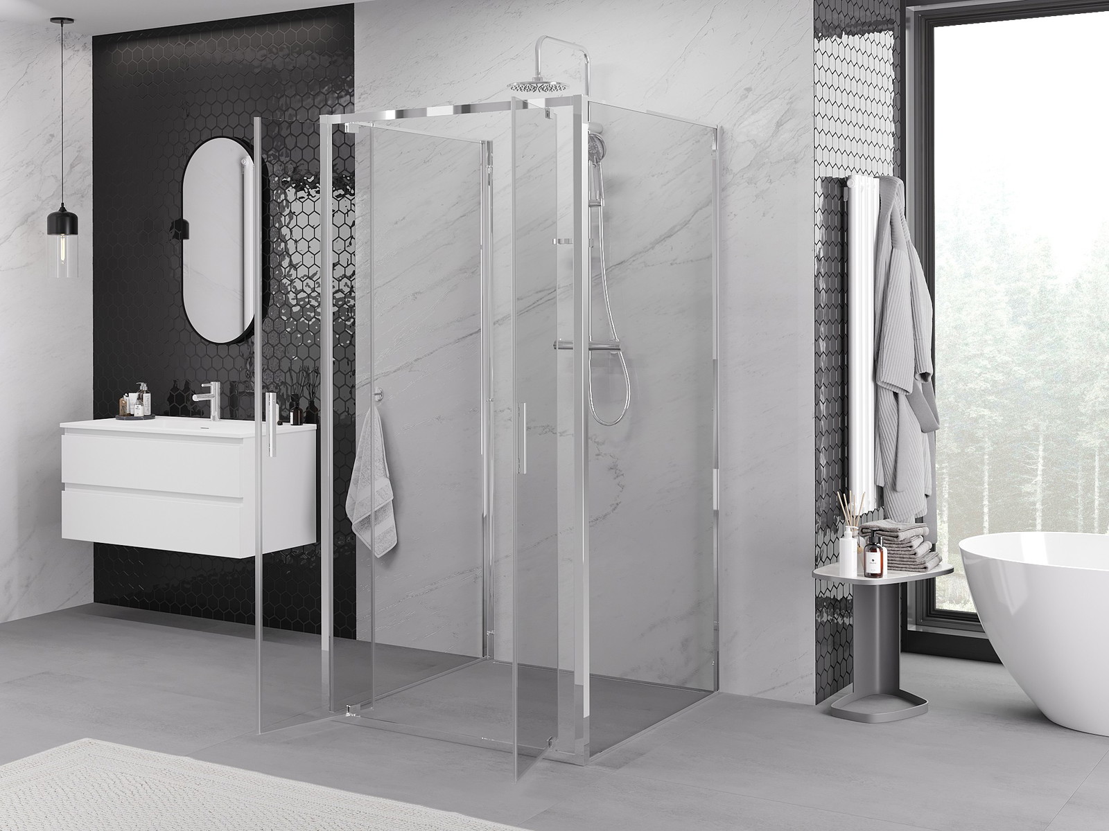 Mexen Exo-3S 3-falú nyíló zuhanykabin, 90 x 90 cm, átlátszó, króm - 8182-090-090-01-00-3S