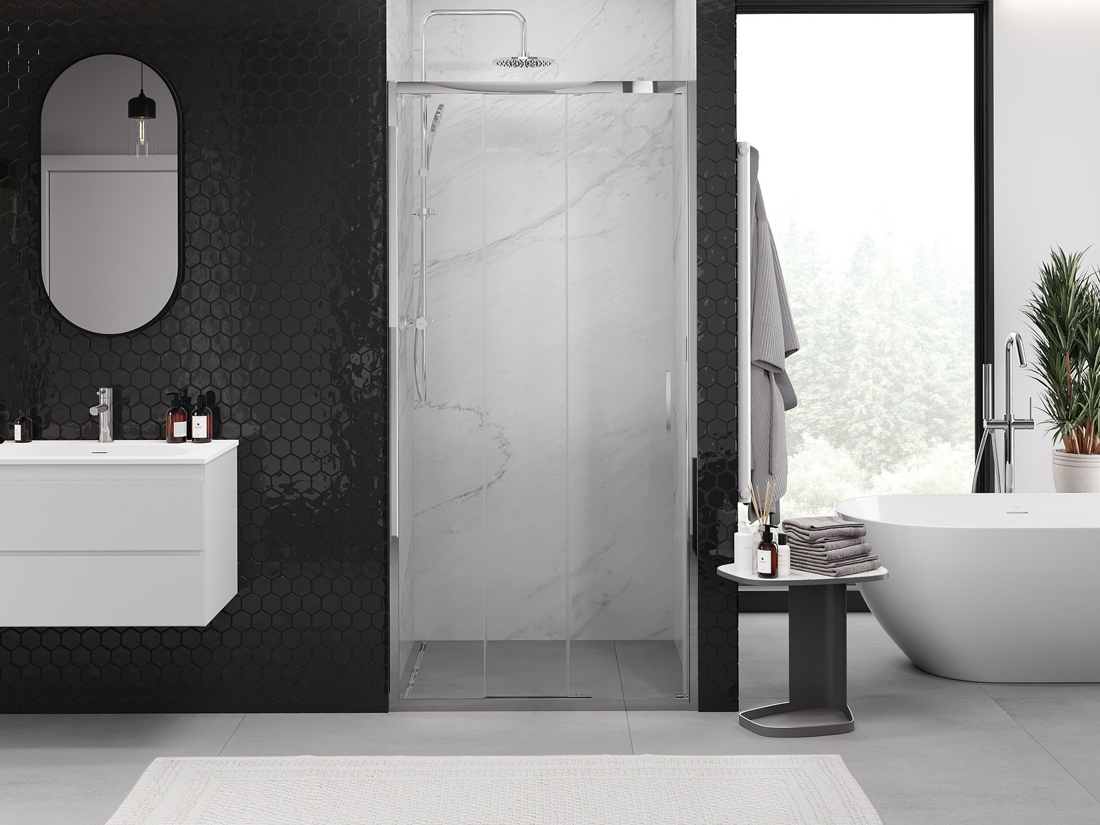 Mexen Exo-3S 95 cm-es tolóajtós zuhanyajtó, átlátszó, króm - 8153-095-000-01-00
