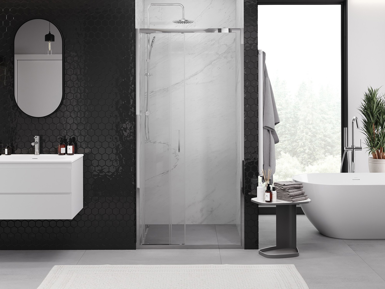 Mexen Exo-3S tolóajtós zuhanyajtó 100 cm, átlátszó, króm - 8153-100-000-01-00