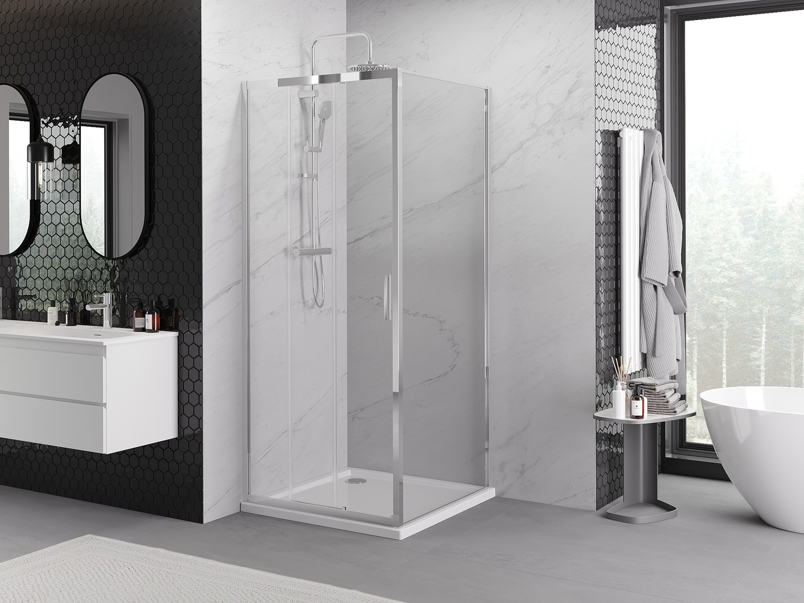 Mexen Exo tolóajtós zuhanykabin 85 x 85 cm, átlátszó, króm - 8153-085-085-01-00