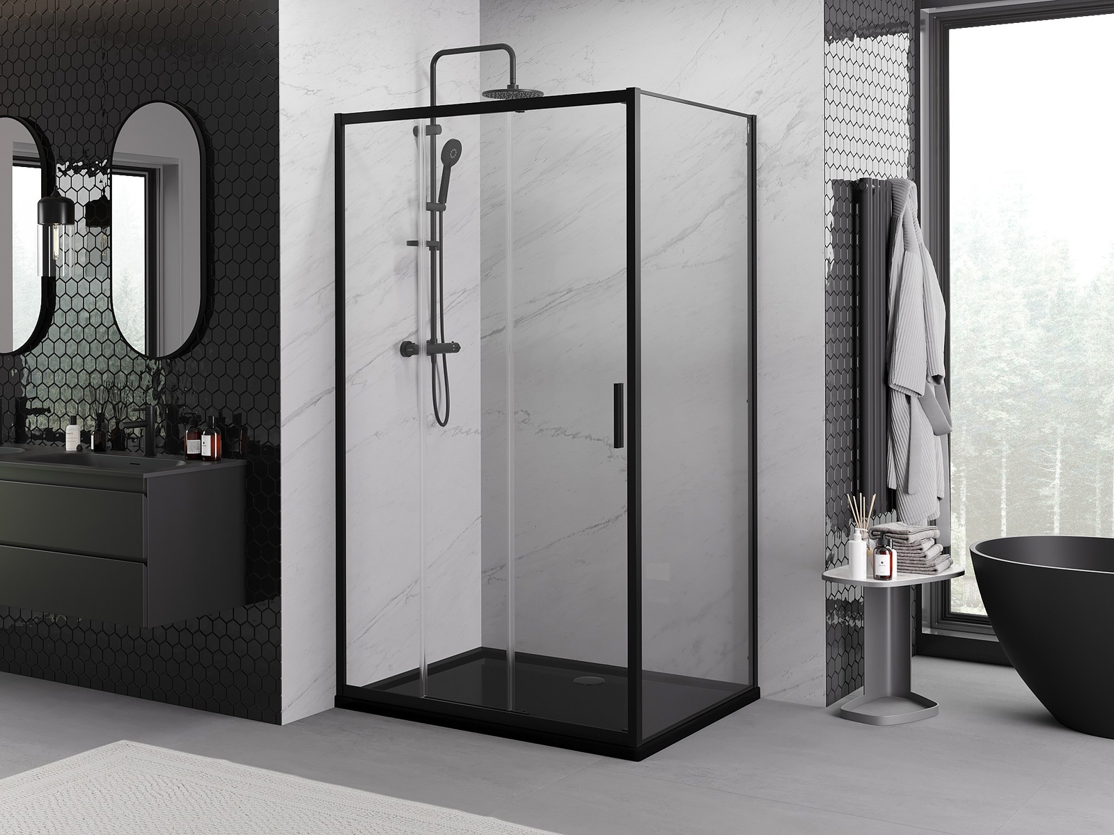 Mexen Exo tolóajtós zuhanykabin 85 x 70 cm, átlátszó, fekete - 8153-085-070-70-00