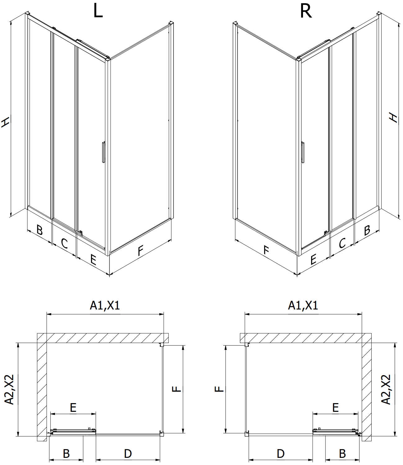 A zuhanykabinok, ajtók és válaszfalak alapesetben meghatározott méretű zuhanytálcákra történő szerelésre alkalmasak. Ezek a méretek szerepelnek a termék nevében vagy leírásában. Fontos azonban tudni, hogy az elemek tényleges méretei kismértékben eltérhetnek a névleges értékektől. Közvetlenül a padlóra történő szerelés esetén javasoljuk a külső méretek és az elemek elrendezésének pontos ellenőrzését a műszaki rajz alapján.