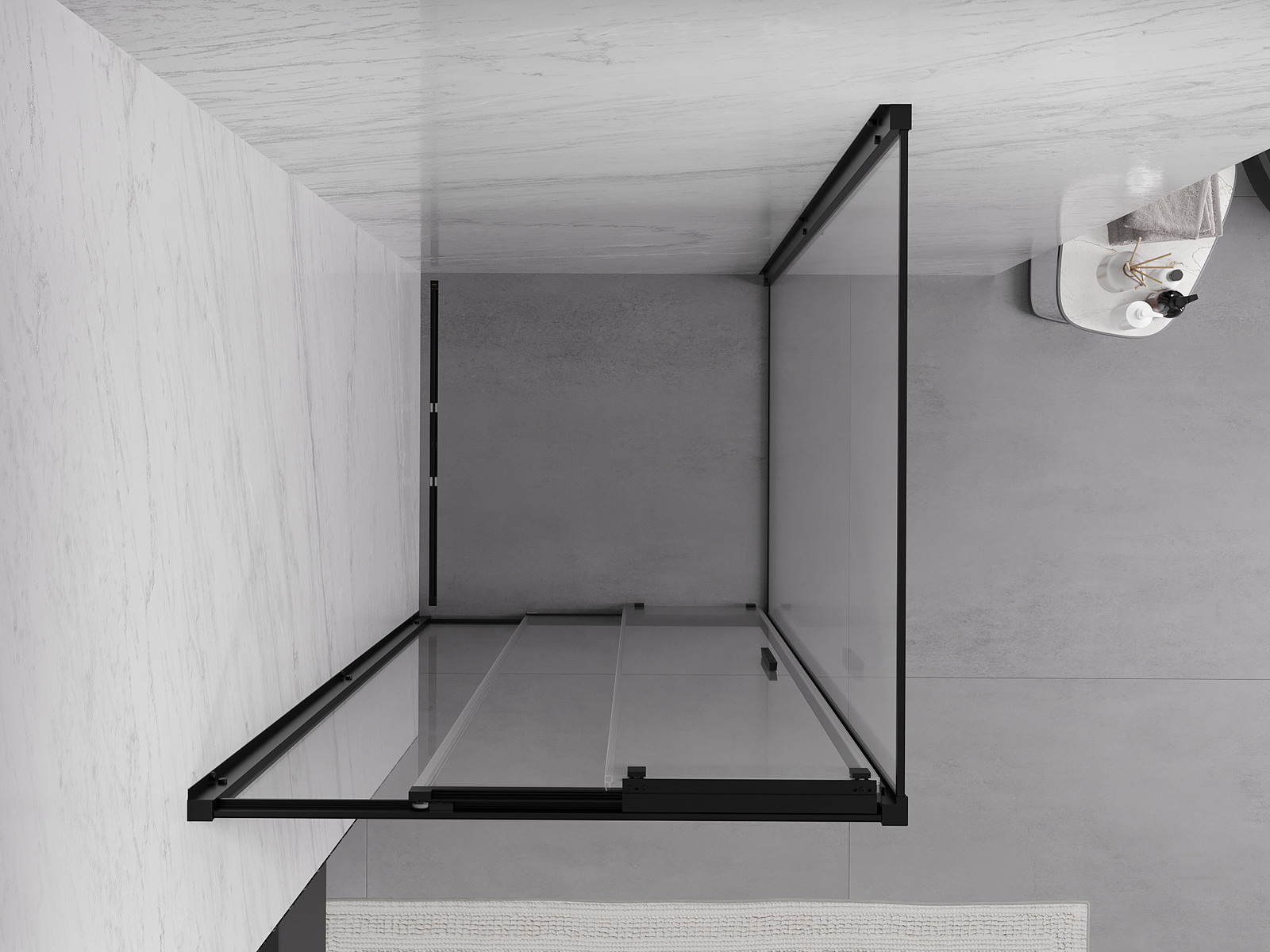 Mexen Exo tolóajtós zuhanykabin 95 x 95 cm, átlátszó, fekete - 8153-095-095-70-00