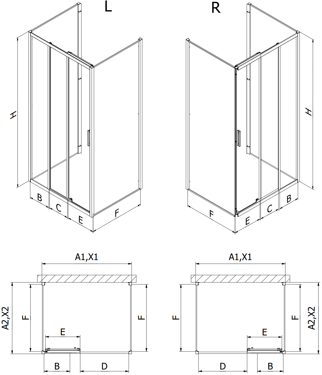 A zuhanykabinok, ajtók és válaszfalak alapesetben meghatározott méretű zuhanytálcákra történő szerelésre alkalmasak. Ezek a méretek szerepelnek a termék nevében vagy leírásában. Fontos azonban tudni, hogy az elemek tényleges méretei kismértékben eltérhetnek a névleges értékektől. Közvetlenül a padlóra történő szerelés esetén javasoljuk a külső méretek és az elemek elrendezésének pontos ellenőrzését a műszaki rajz alapján.