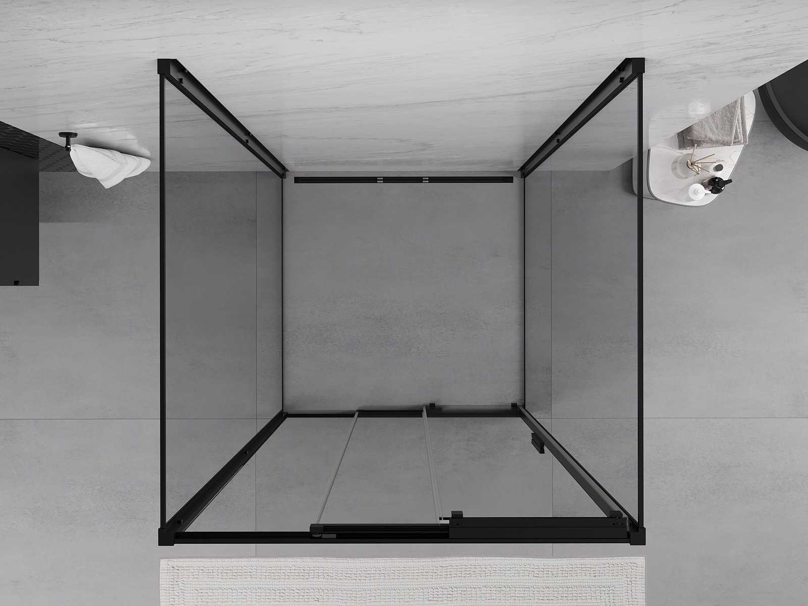 Mexen Exo-3S 3-oldalú toló zuhanykabin 80 x 80 cm, átlátszó, fekete - 8153-080-080-70-00-3S
