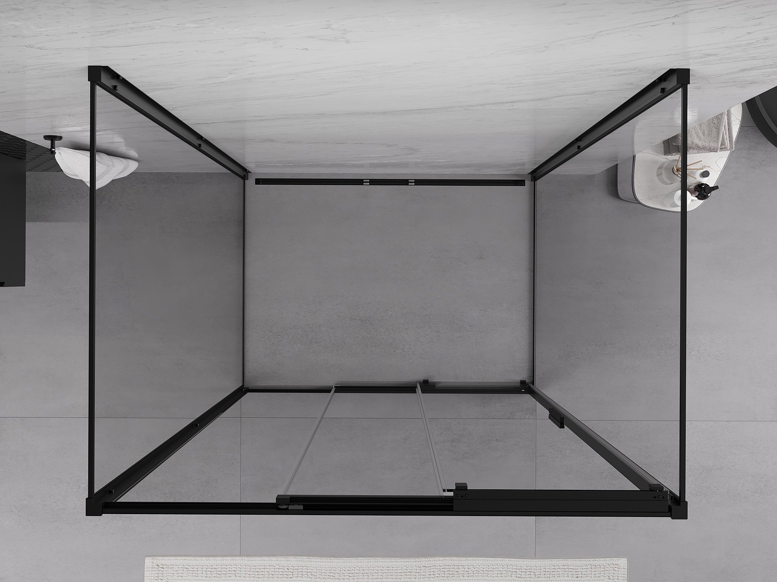 Mexen Exo-3S 3-falú zuhanykabin tolóajtóval, 100 x 85 cm, átlátszó, fekete - 8153-100-085-70-00-3S