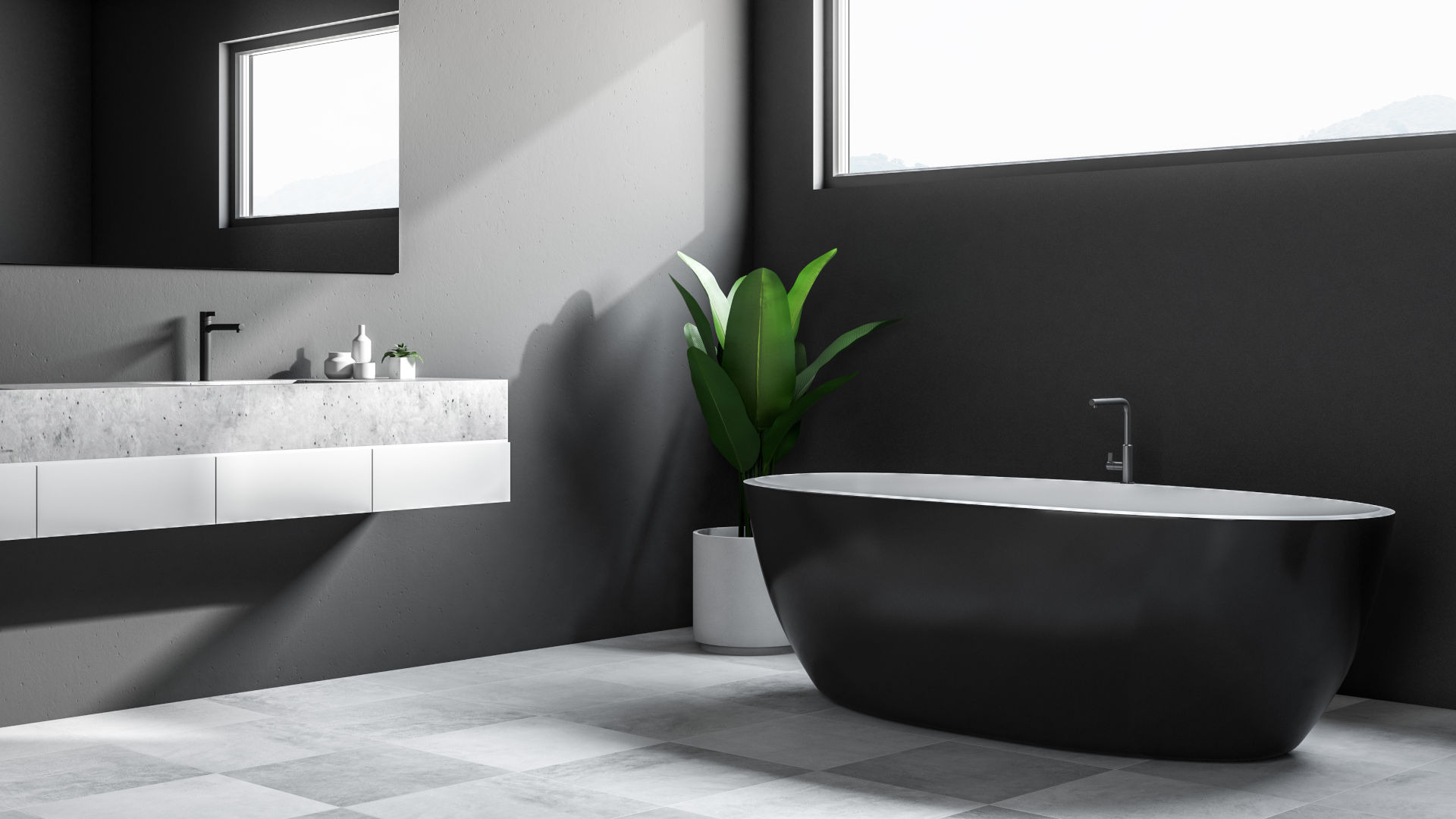 Romantikus hangulat a fürdőszobában szabadon álló káddal